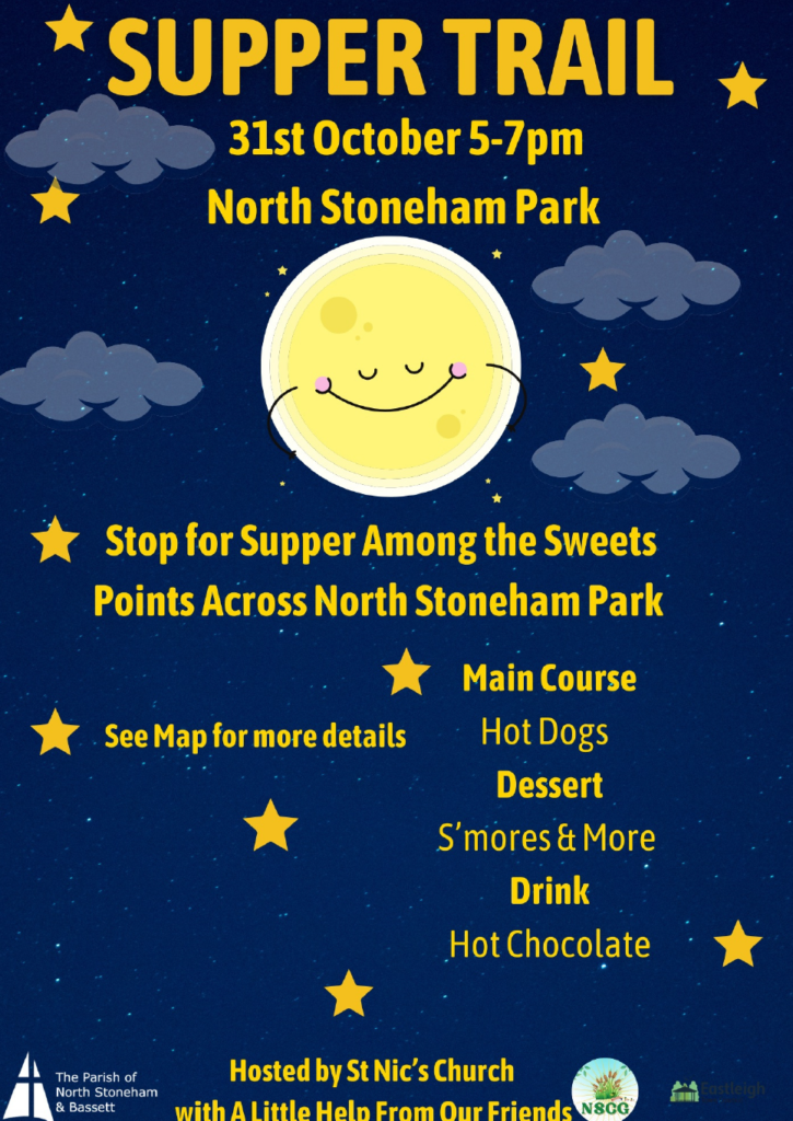 Our very successful Halloween Supper Trail with our friends at St Nic’s Church returns for 2024!. Thanks to funding from St Nics North Stoneham and Councillor Wayne Irish you can again stop for supper amongst the sweets on Thursday 31st October 5-7pm.